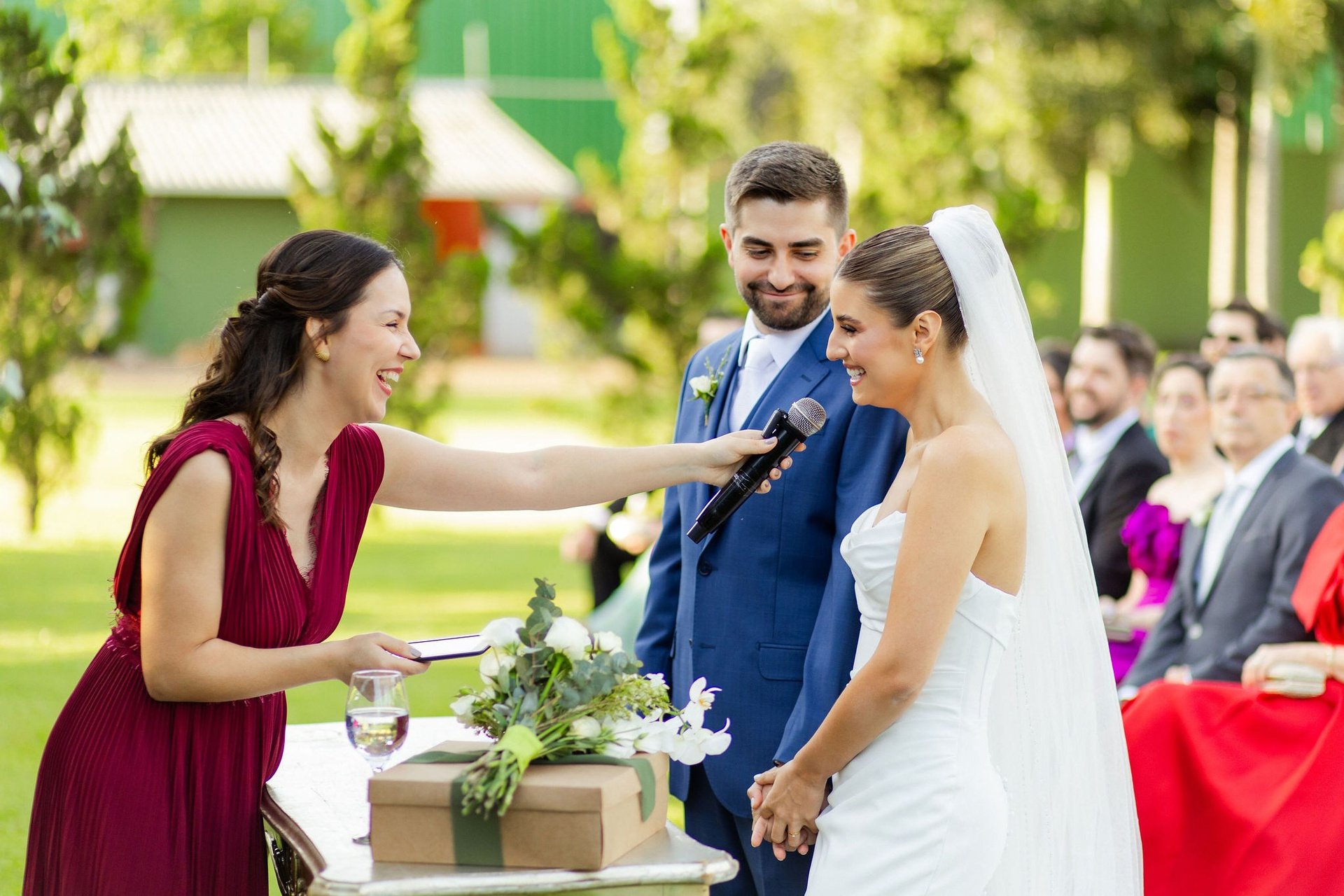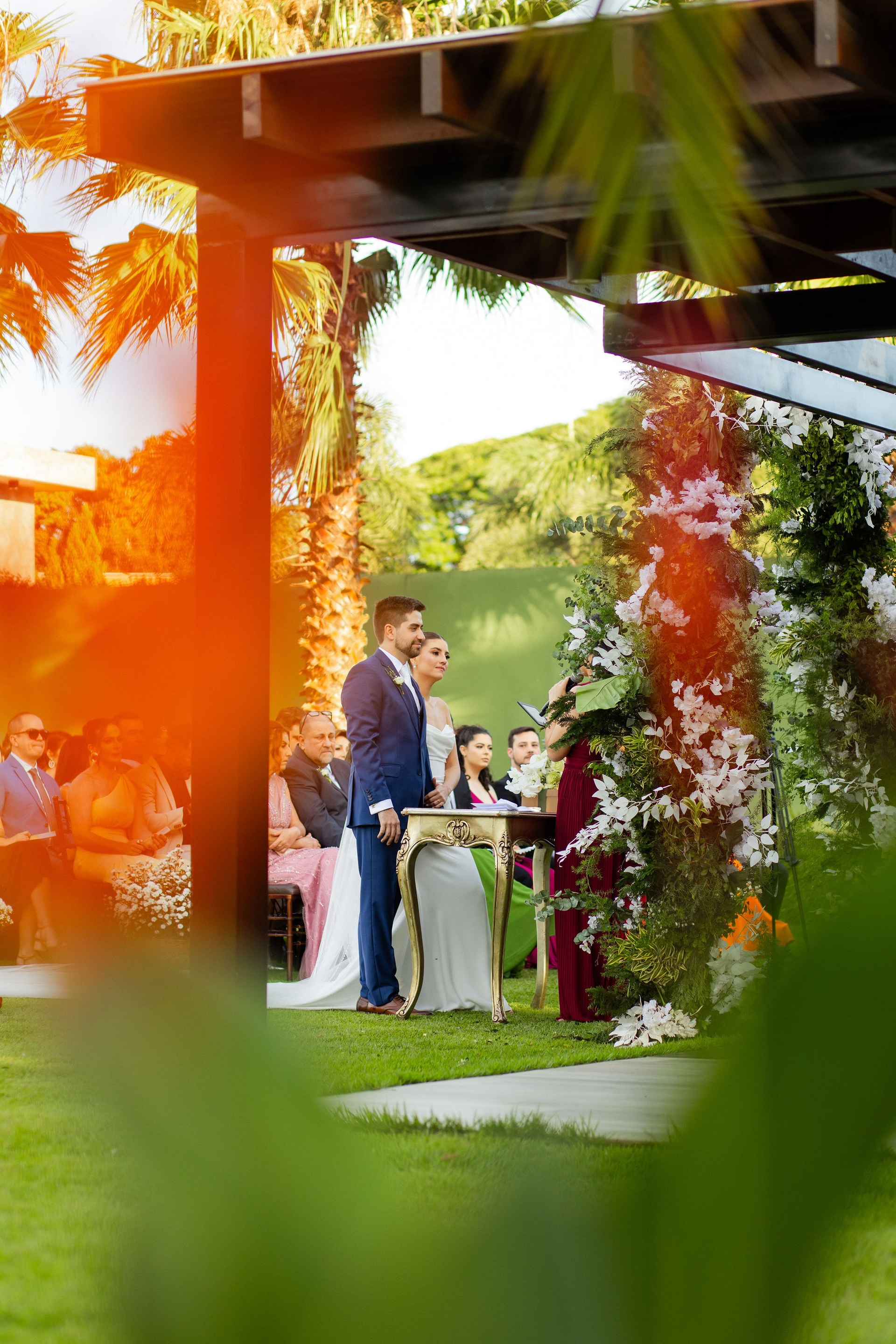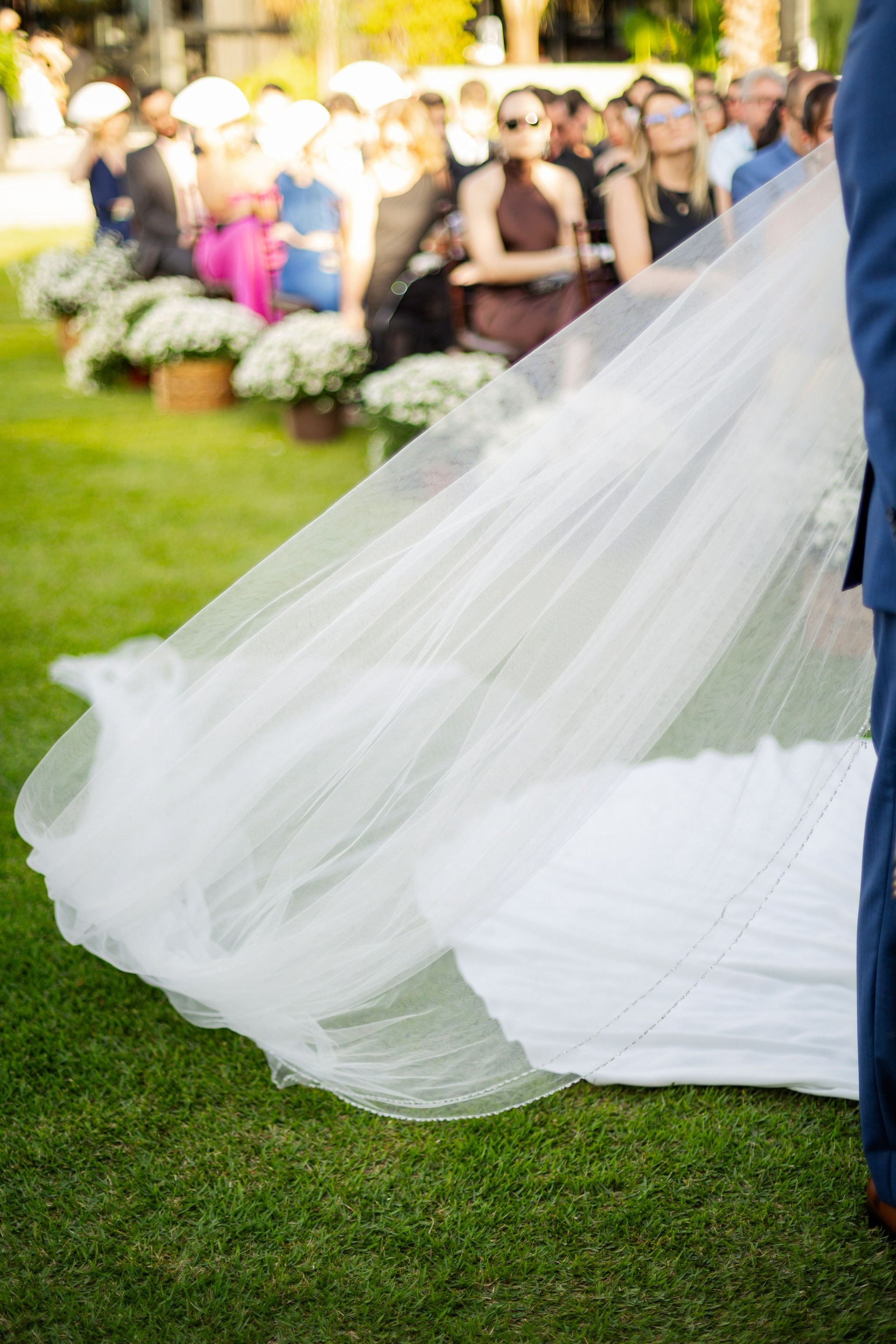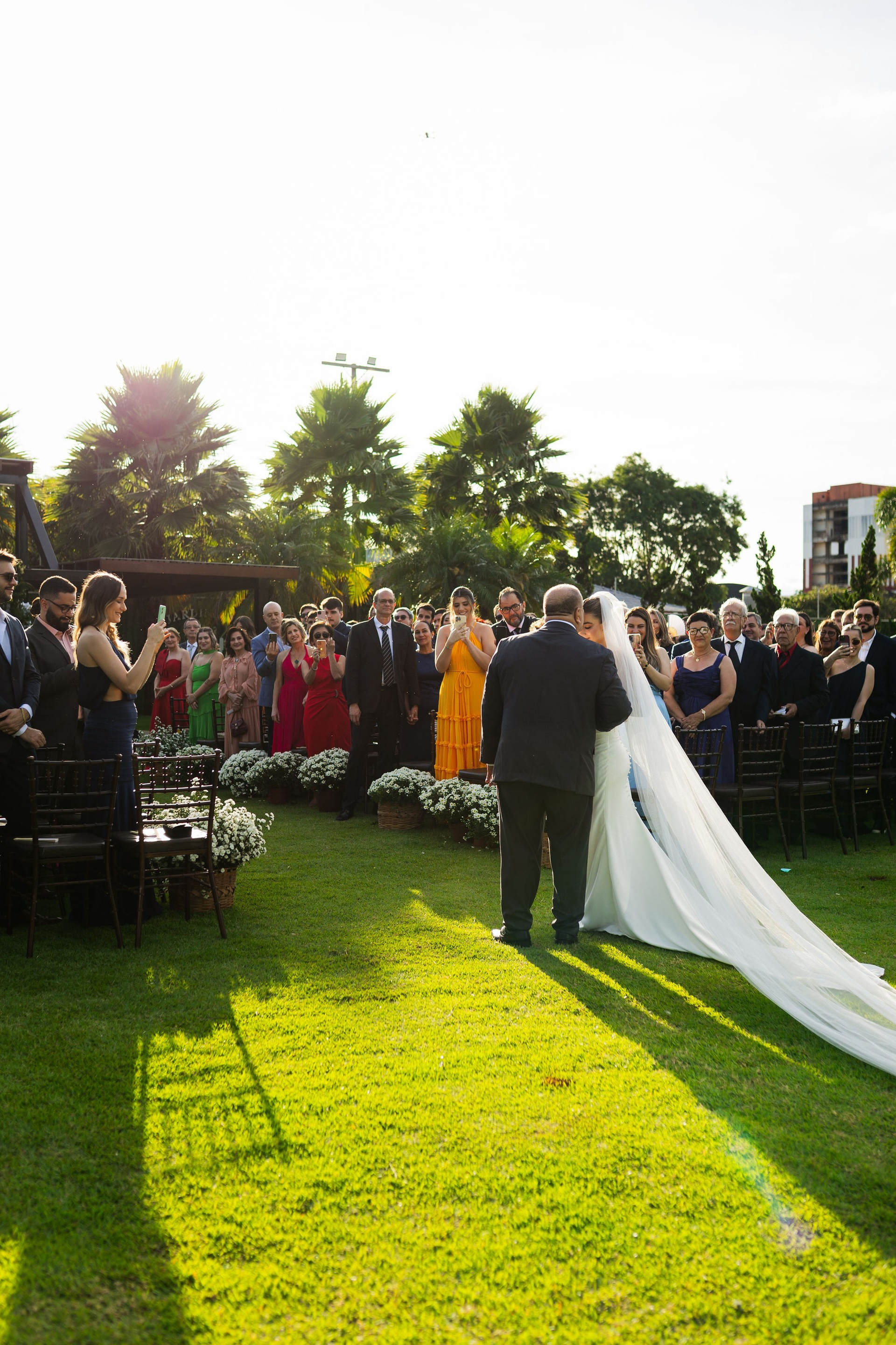 “Os dias que antecederam nosso casamento foram de muita chuva. Na madrugada do sábado, uma tempestade. E, embora o receio de precisar acionar o plano B insistisse em aparecer, a confiança nas minhas orações me trazia certa calma (somada à simpatia de colocar ovo na sacada rsss). Eu pedia a Deus apenas que não chovesse, podia ser nublado, podia ser cinza, isso não me importava. Mas, quando fechava os olhos em cada oração, via um dia lindo — como um lembrete carinhoso de que eu não precisava desejar pouco…
