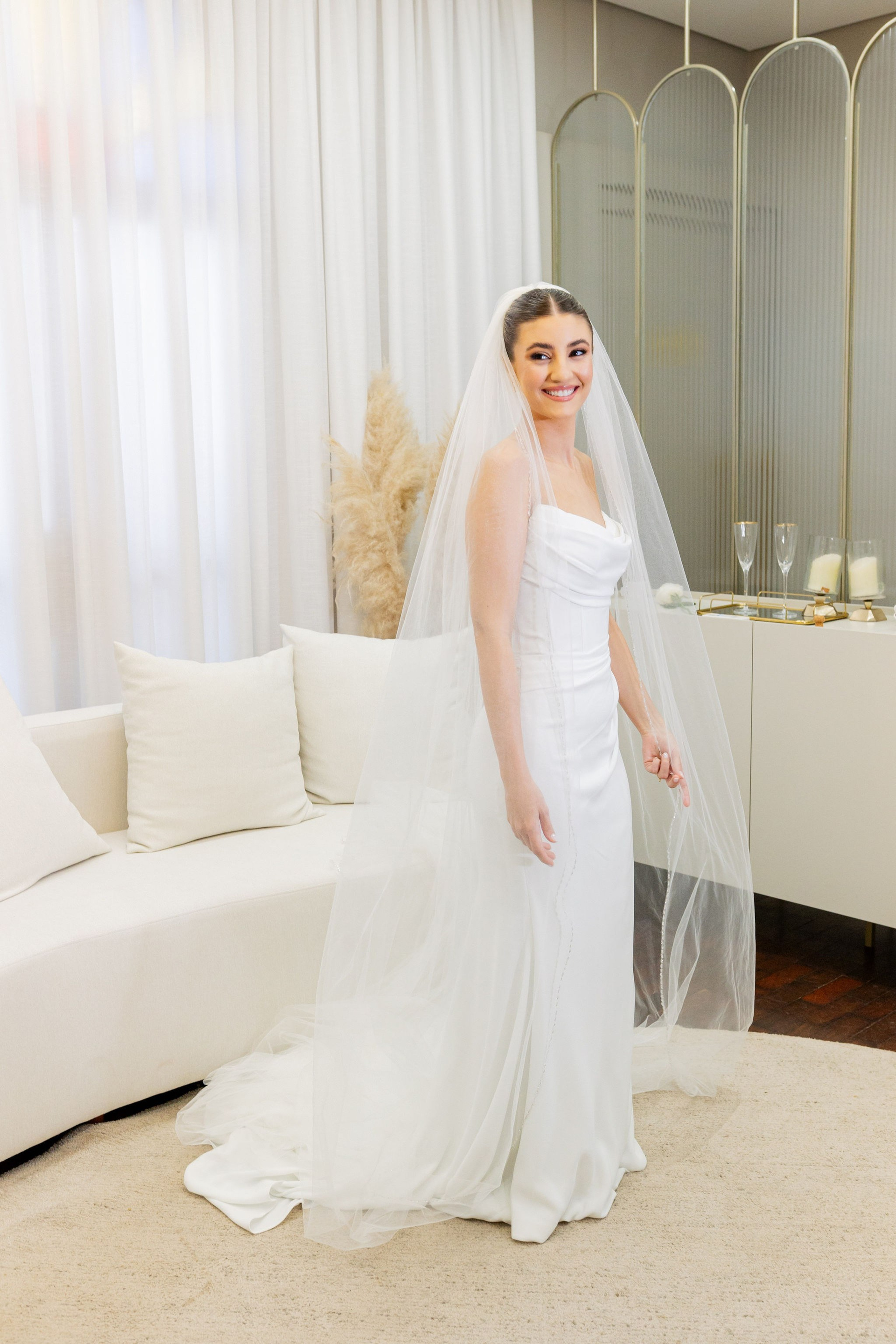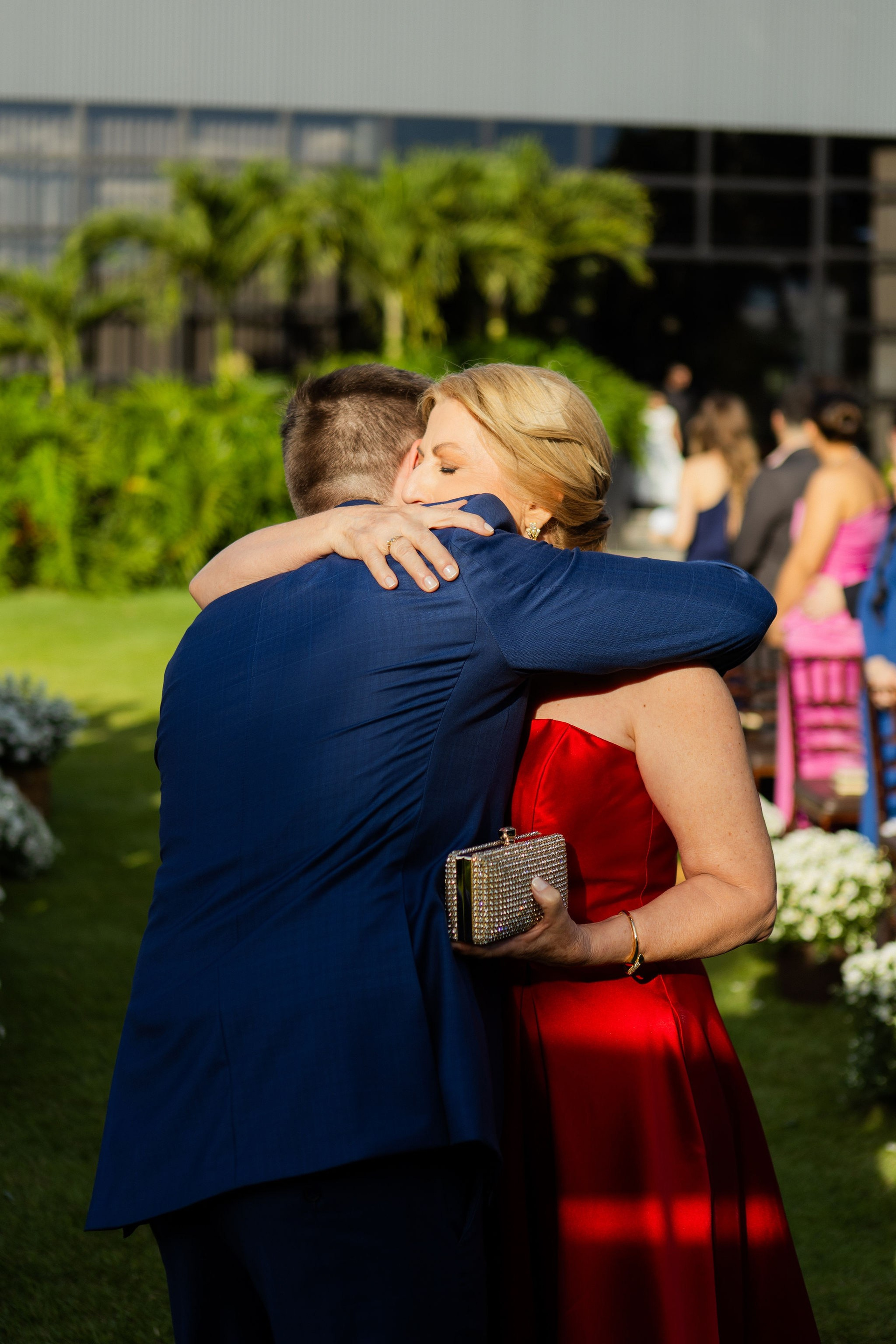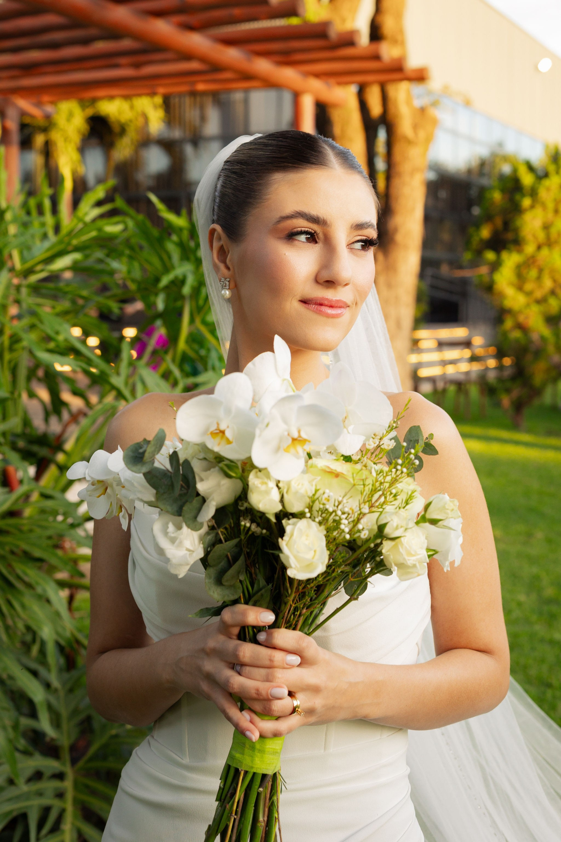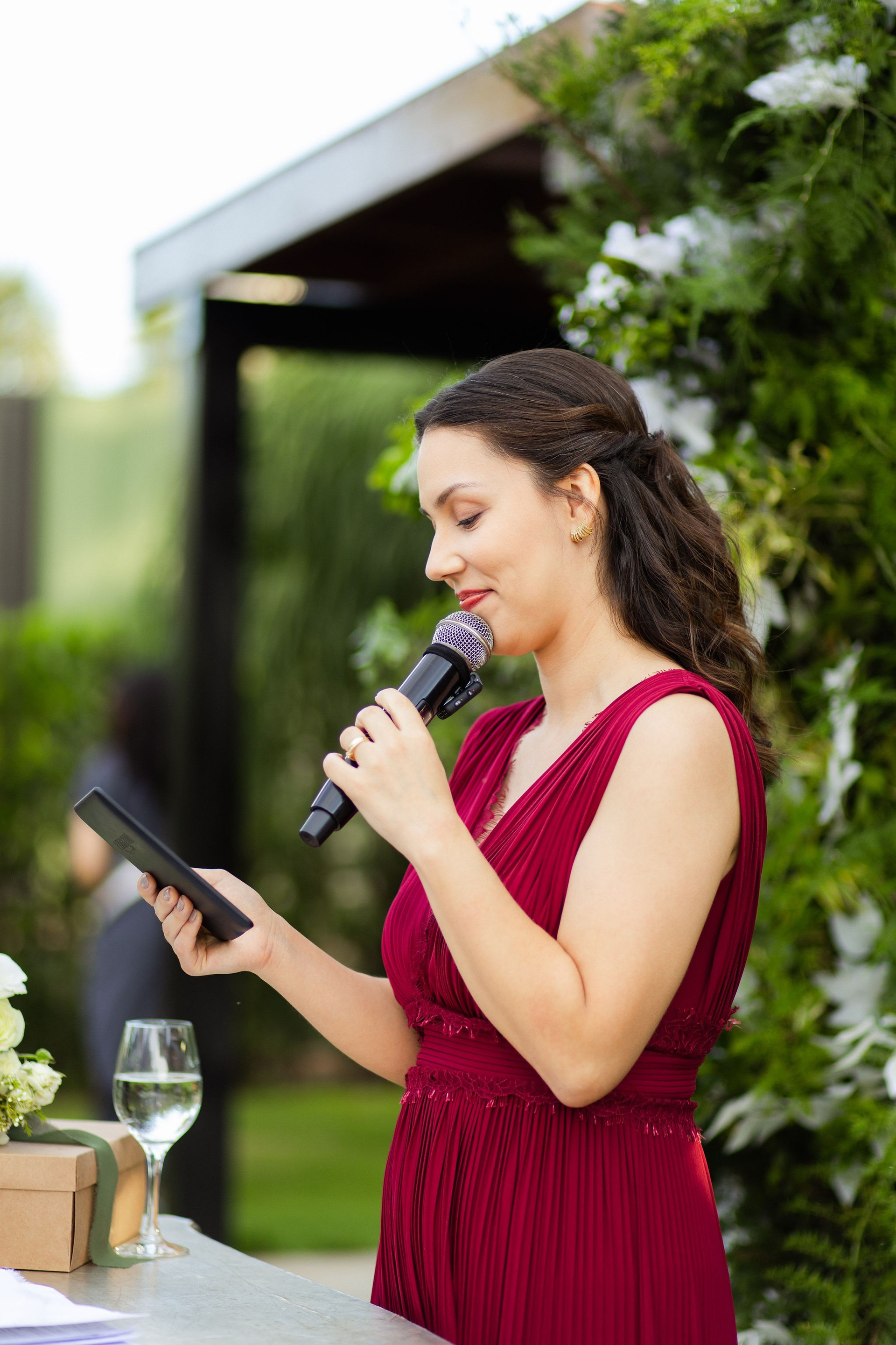 “Os dias que antecederam nosso casamento foram de muita chuva. Na madrugada do sábado, uma tempestade. E, embora o receio de precisar acionar o plano B insistisse em aparecer, a confiança nas minhas orações me trazia certa calma (somada à simpatia de colocar ovo na sacada rsss). Eu pedia a Deus apenas que não chovesse, podia ser nublado, podia ser cinza, isso não me importava. Mas, quando fechava os olhos em cada oração, via um dia lindo — como um lembrete carinhoso de que eu não precisava desejar pouco…